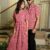 Couple Matching Purple Cotton Anarkali Midi Dress and Shirt Set ? Geometric Wave Print